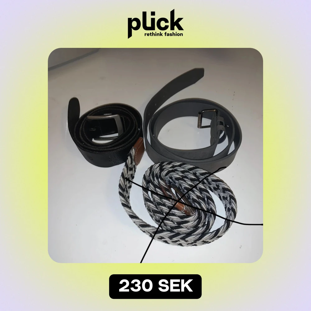 Säljer 2 snygga bälten i olika stilar. Ett svart och ett liknade mocka meterial. Perfekta för att matcha olika outfits och tillfällen. Alla bälten är i bra skick och redo att användas. Passar både till vardag och fest!