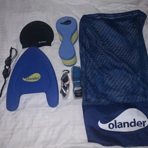 Oanvänt: Två stycken simglassögon: 50kr/styck Två stycken simmössor SOC(blå och svart): 50kr/styck Använda ett fåtal ggr: En dolme/pullbouy: 100kr En simplatta: 80kr Nätpåse: 60kr Paketpris (alltihop): 250kr