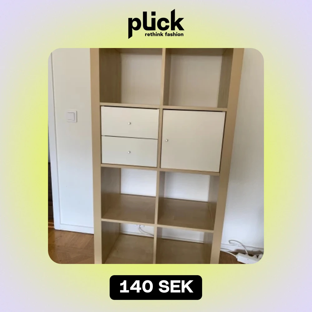 Hylla från IKEA, vitlaserad ekeffekt. Den har några skavandet på sidorna. Insatserna kan man flytta hur man vill. 77x147 cm Finns att hämta i Fågelbacken, Malmö