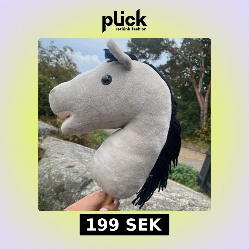 Det här är min käpphäst den är använd några gånger men har legat i mitt garage nått år därför väljer jag att sälja den. Den är grå och mjuk pinnen är en träpinne.