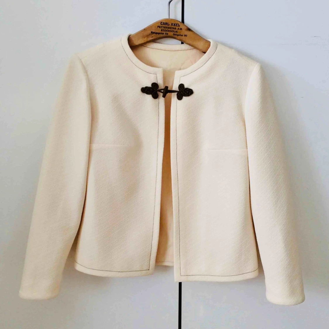 Elegant handsydd damjacka/kavaj. Fin struktur i tyget. Cremevit/äggskal i färgen