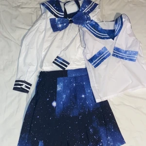 Kawaii sailor uniform!đ§ Trendig japansk skol uniform i galaxy tema!đ Köpt för flera Ă„r sen. PĂ„grund av asiatiska storlekar sĂ„ stĂ„r det L pĂ„ men den passar XS, S eller en mindre Mâ€ïž Allt sĂ€ljs tillsammans dĂ„ fĂ„r man: 1 kjol i normal lĂ€ngd, 1 lĂ„ngarmad tröja och 1 kortarmad tröja!đ€ (obs en pytteliten flĂ€ck pĂ„ den kortĂ€rmade) Skriv för fler bilder!