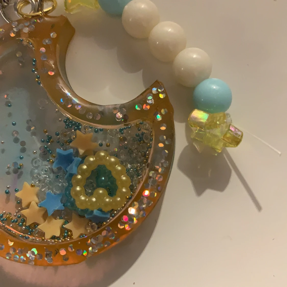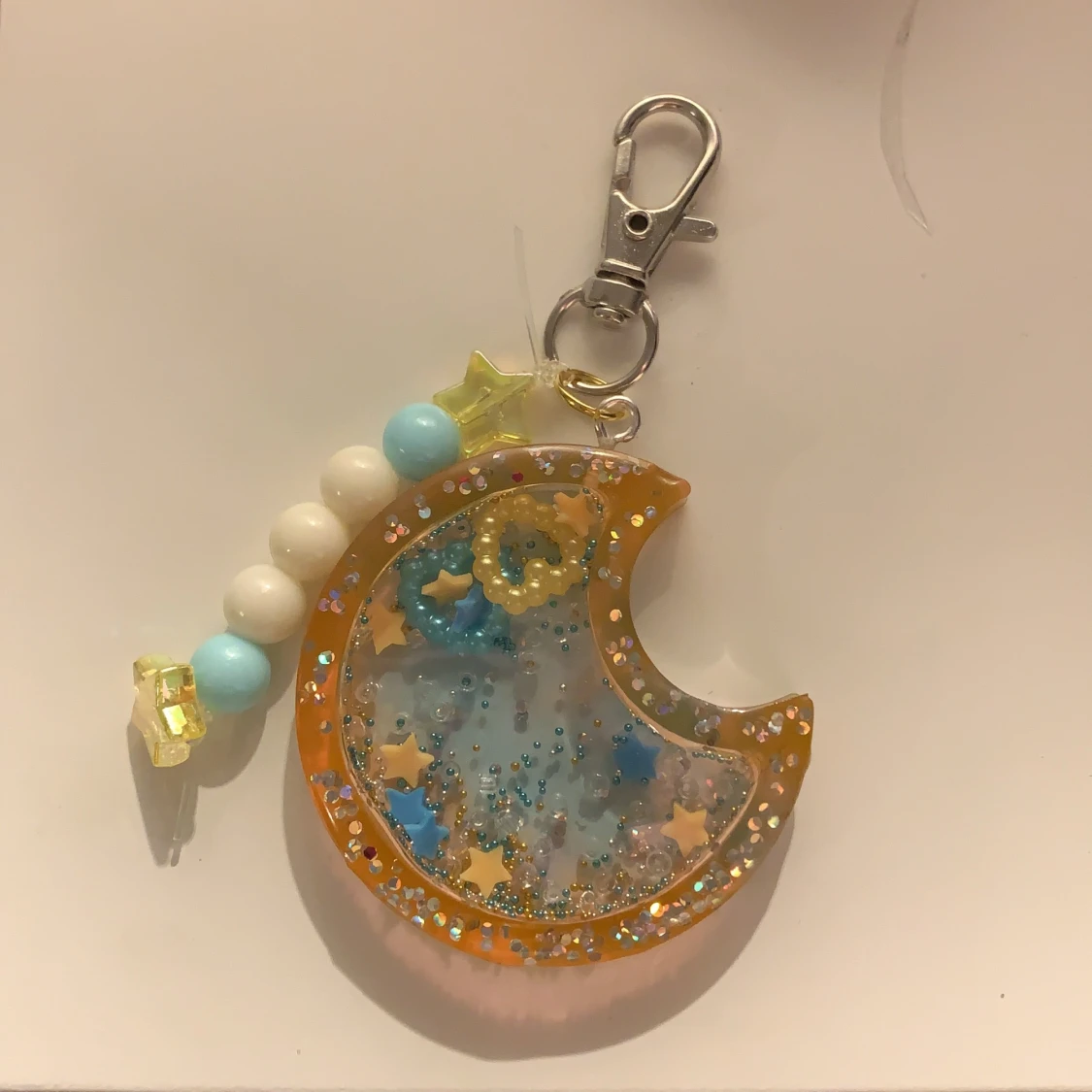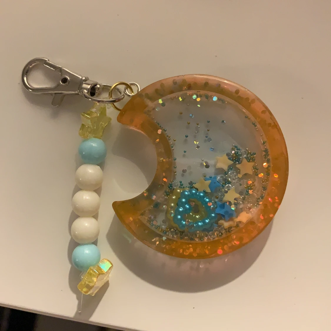 resin shaker i blå och orange. pärlorna inne rör sig om man skakar de!!
