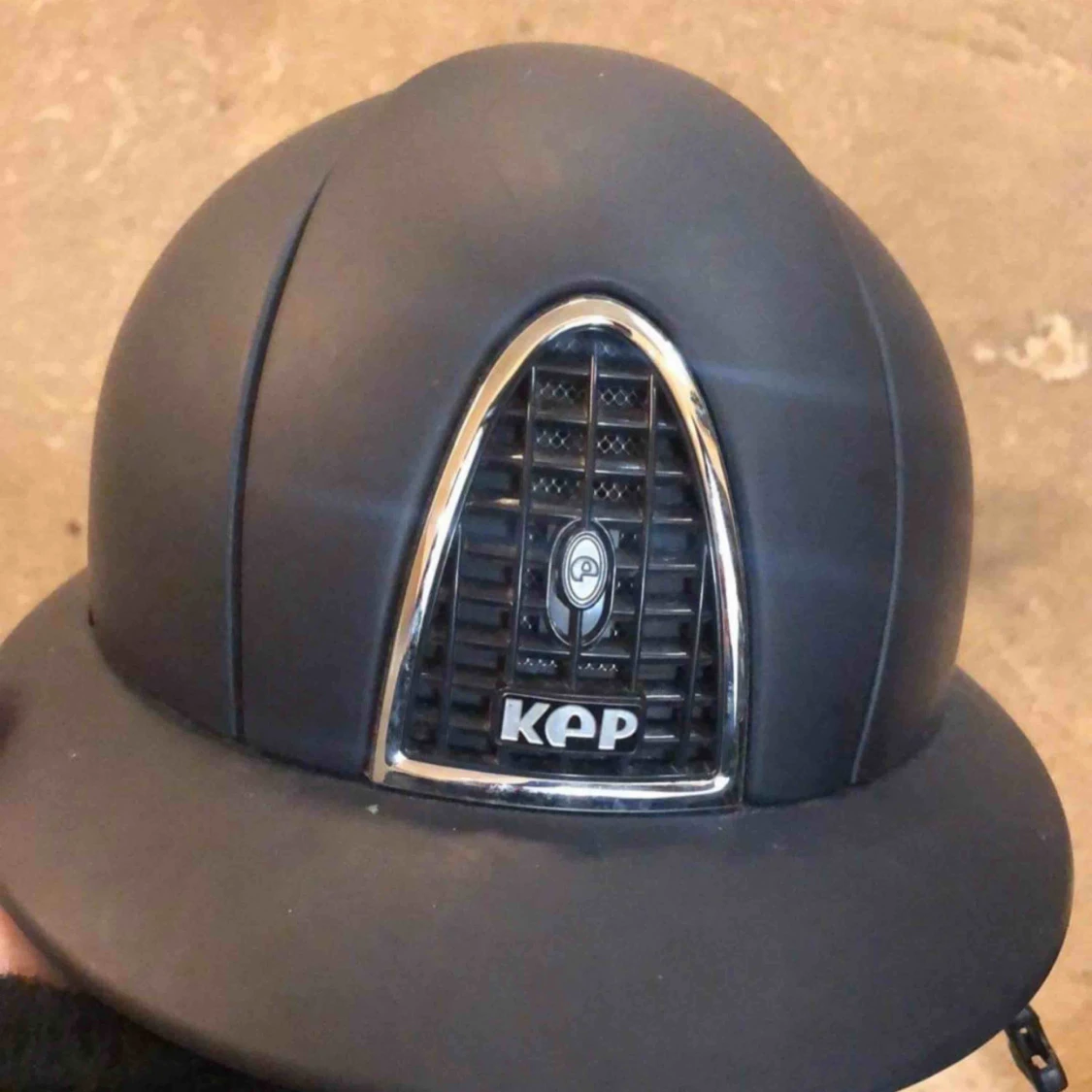 Säljer min KEP hjälm. Marinblå med solskärm, silver ”grill” strl 58. Inte använd mycket alls. Skalet är strl M ☺️