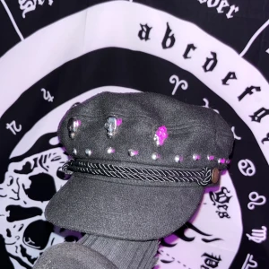En DIY keps jag gjorde för några år sedan med silverfärgade nitar men knappt använt den, passform står (S) men skulle säga att den passar dom flesta :)