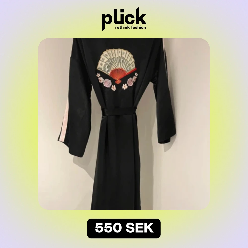 En fin kimono från HM samarbete med Nicki Minaj. I nyskick, väldigt fin och sitter sminkande på kroppen. I storlek XS men passar perfekt om du har S/M också 🤍