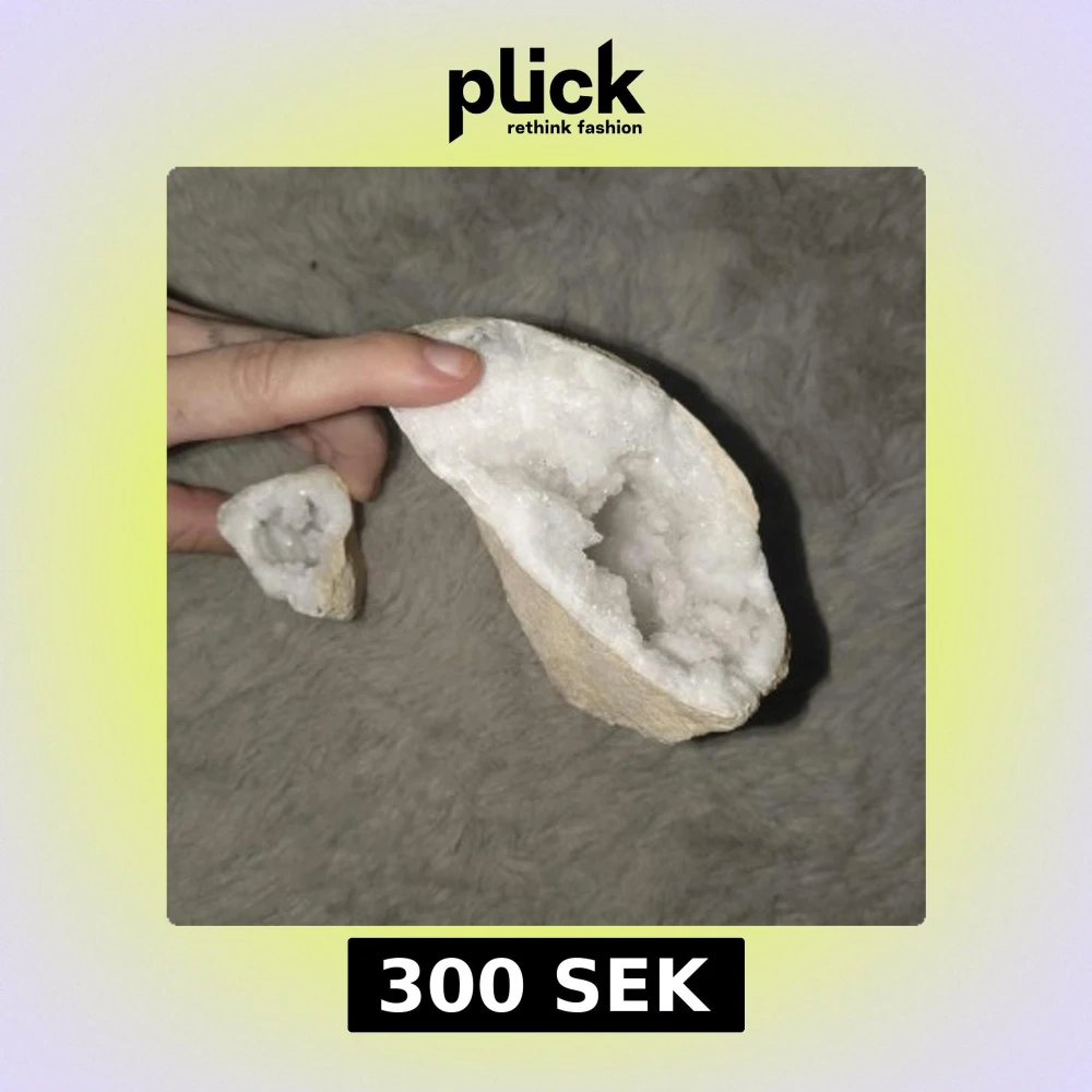 Bilden visar två vita geoder med kristallin insida, troligen kvarts. De är naturliga mineraler. Produkten är i gott skick utan synliga defekter.