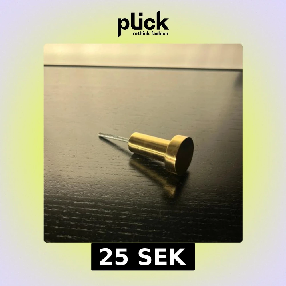 Krok i mässing som skruvas upp på väggen. Diameter 3cm.