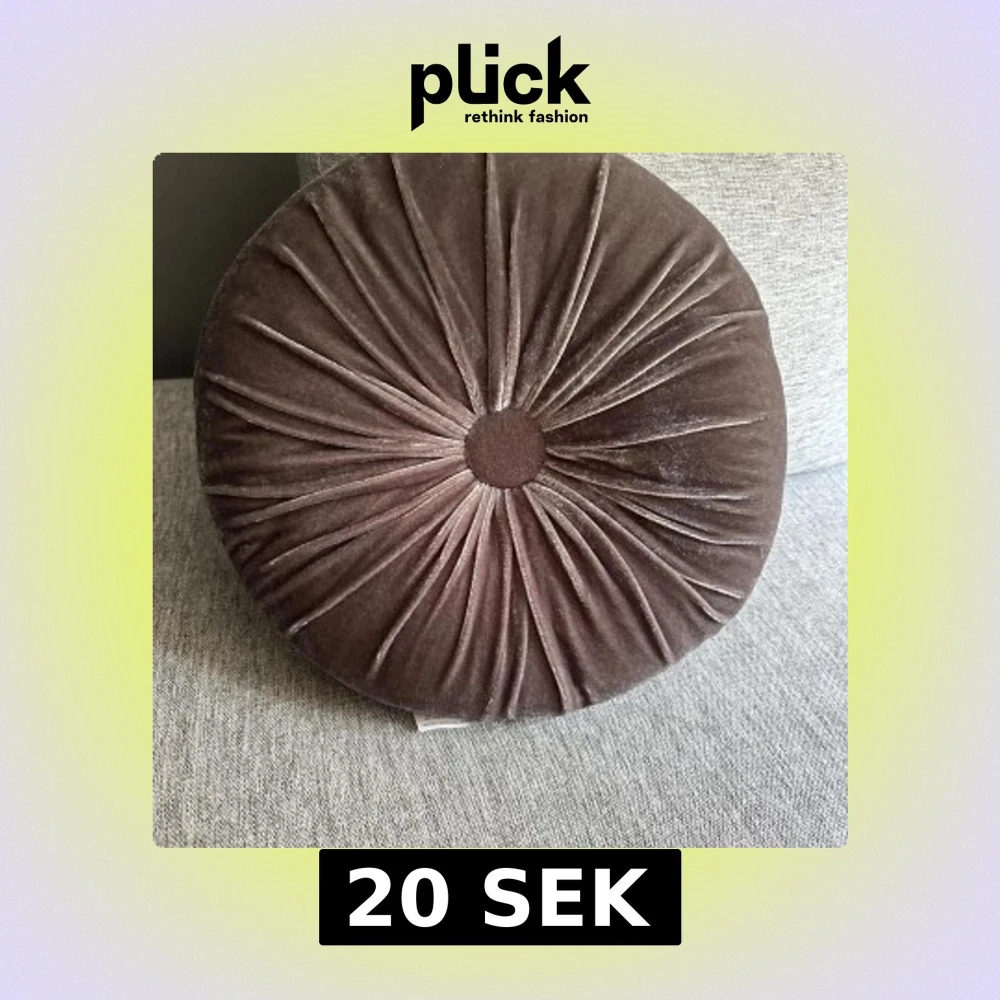 rund kudde i brun sammet med tvättlapp, material 100% polyester. Inga synliga defekter eller slitage.