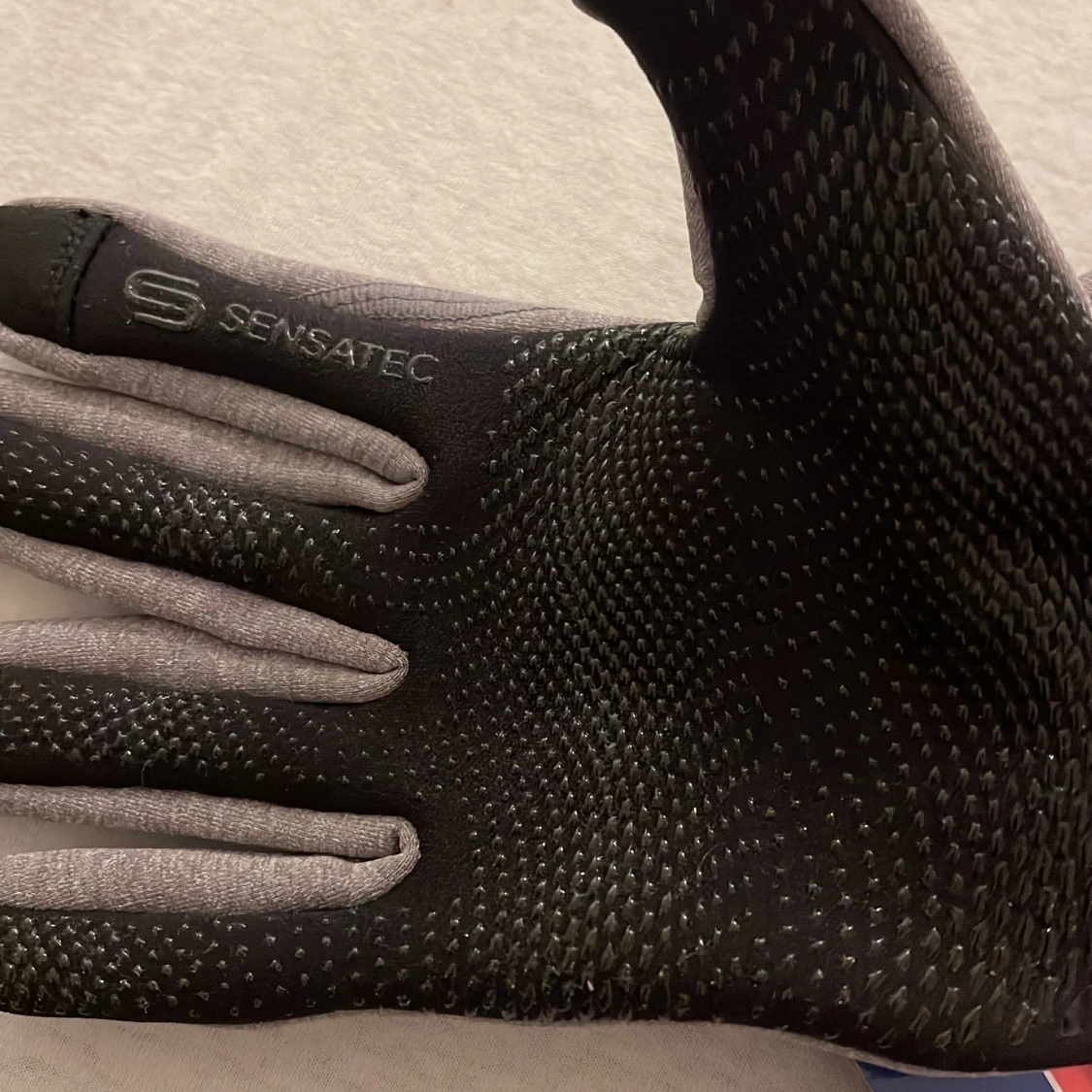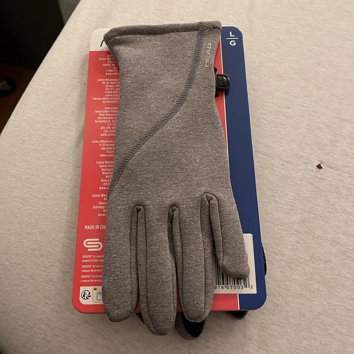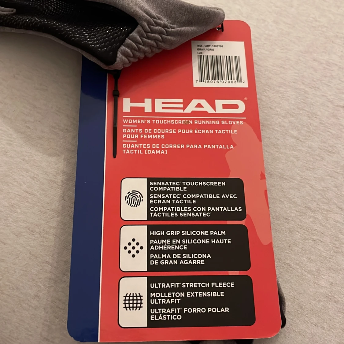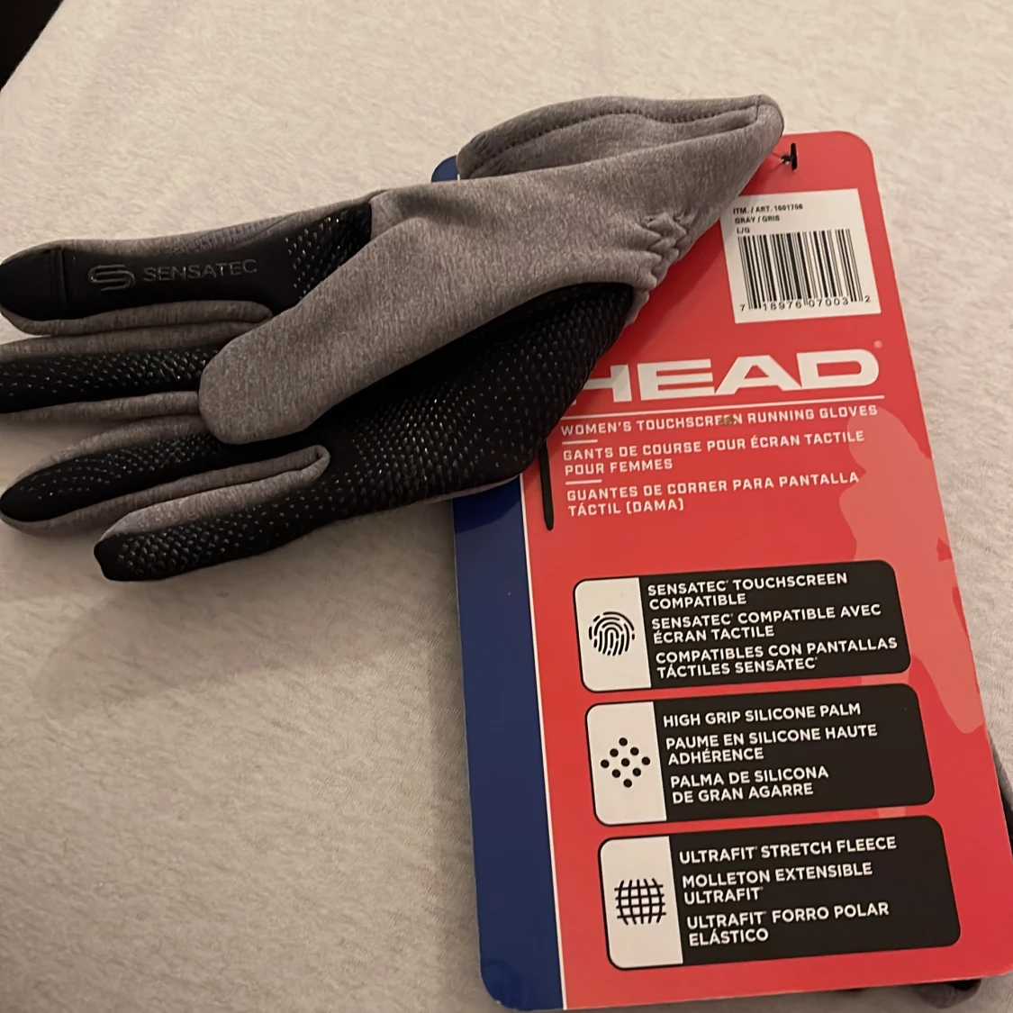 Säljer ett par grå löparhandskar från HEAD med Sensatec-teknologi för touchskärm. Handflatan har svart silikonmönster för extra grepp och insidan är i stretchig fleece som känns mjuk och smidig. Perfekta för löpning när det är kallt ute.