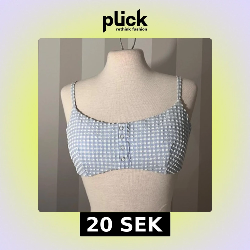Supersöt bikini i blåvitt rutigt mönster med smala axelband och knyt i ryggen.