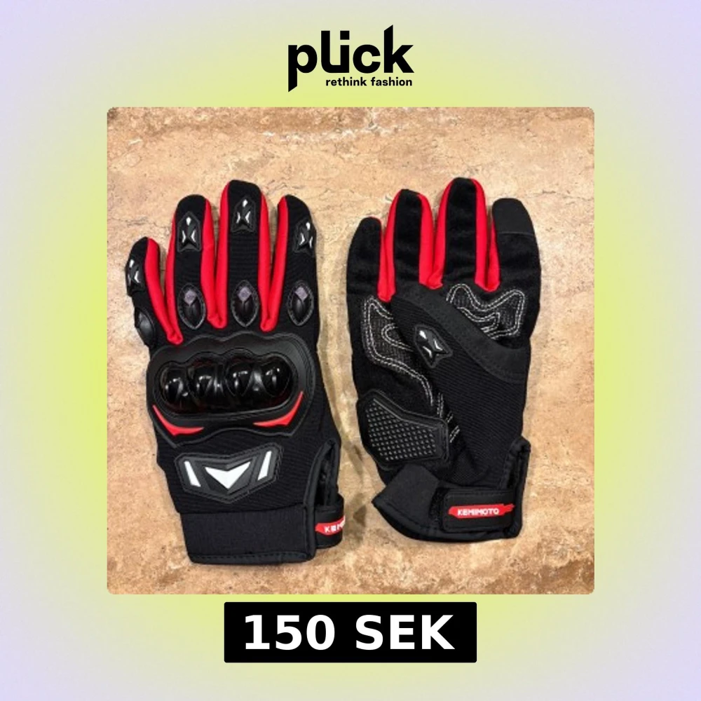 Säljer ett par svarta och röda motorcykelhandskar från Kemimoto.
