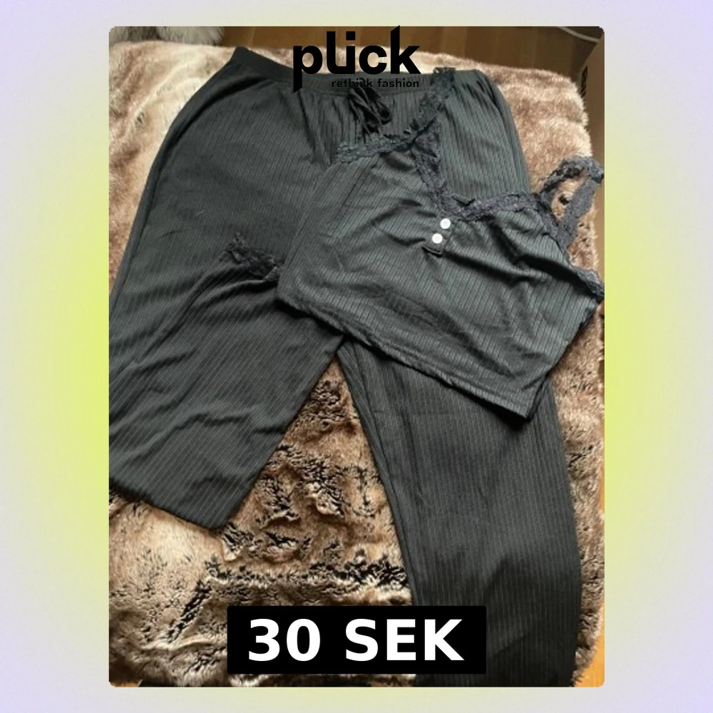Svart ribbad pyjamas set med spets