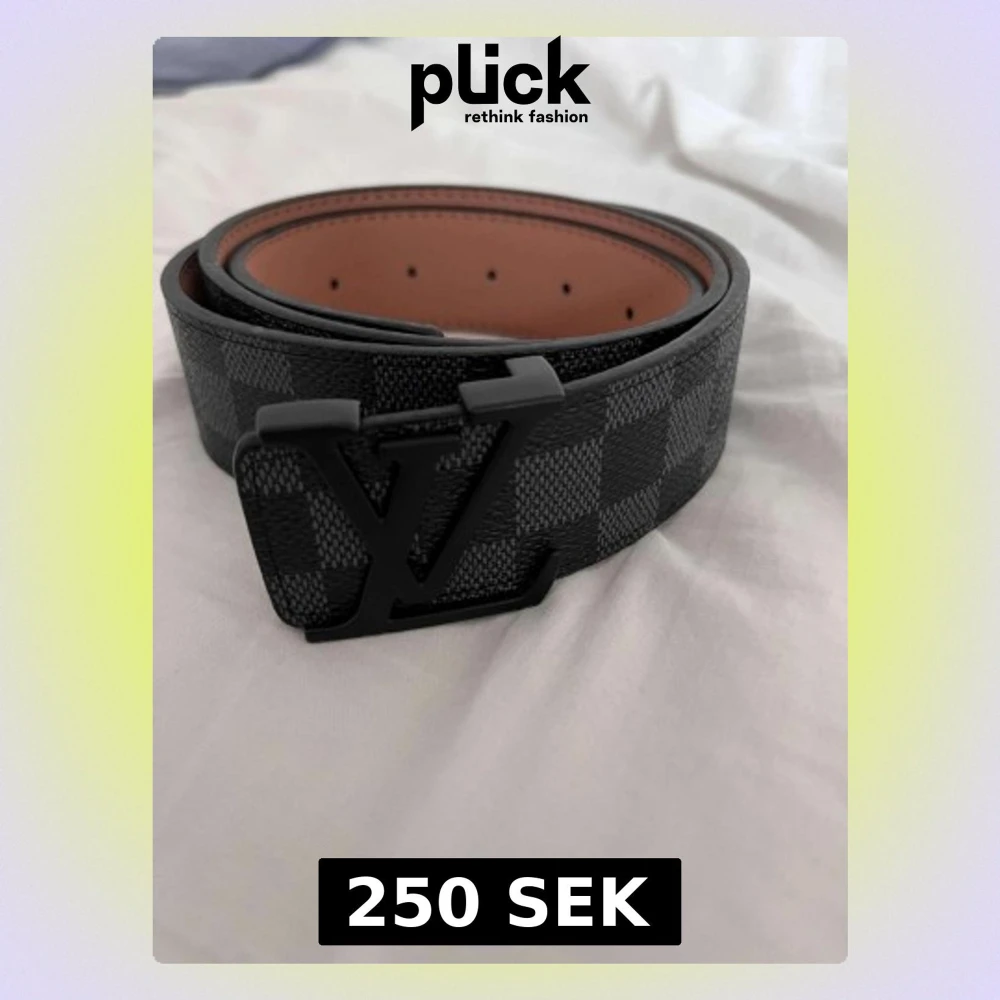 Snyggt L-bälte i Damier-mönster med svart spänne. Storlek: 110 cm