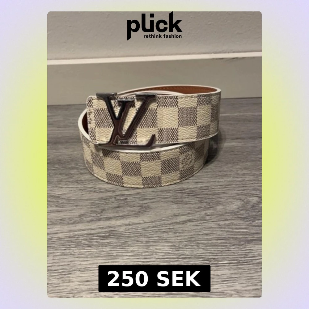 Snyggt L-bälte i Damier-mönster med silver spänne. Storlek: 110 cm