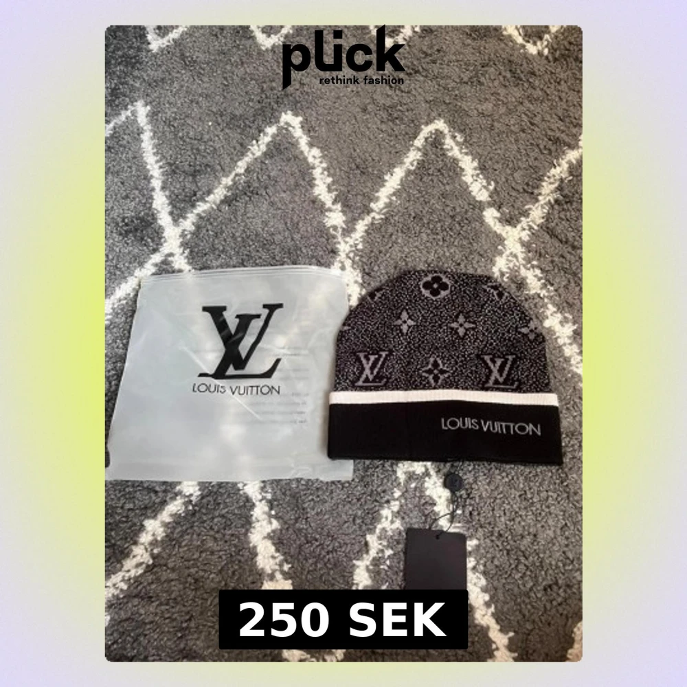 Exklusiv mössa från L i grått och svart med klassiskt L-monogram och blommönster. Mössan har en svart uppvikt kant med vitta rand och broderad L-logga framtill. Tillverkad i mjukt stickat material, perfekt för kyliga dagar.
