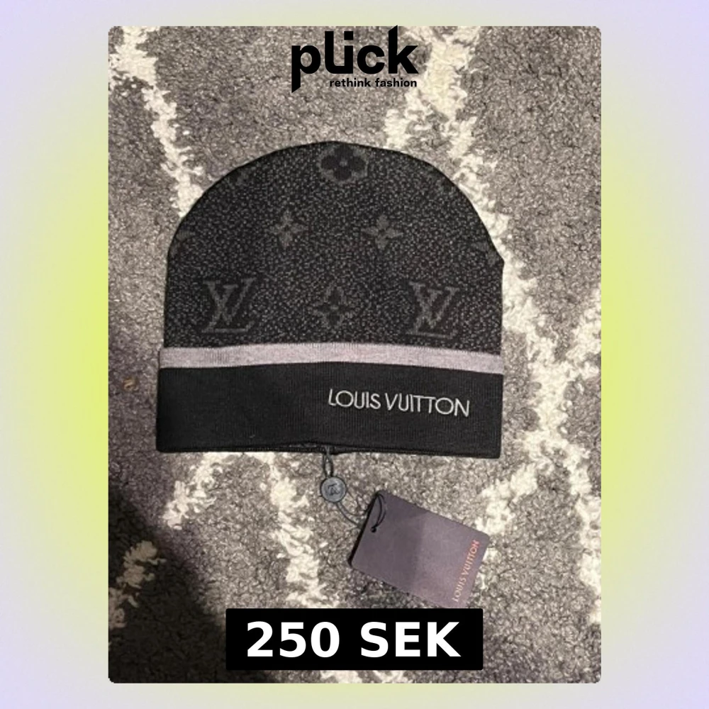 Exklusiv mössa från L i grått och svart med klassiskt L-monogram och blommönster. Mössan har en svart uppvikt kant med grå rand och broderad L-logga framtill. Tillverkad i mjukt stickat material, perfekt för kyliga dagar.