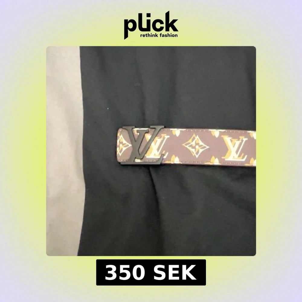 Säljer ett brunt L och V bälte med klassiskt monogrammönster och L och V-logga på spännet. Bältet är tillverkat i äkta skinn och har detaljer i beige och guld. Perfekt accessoar för dig som vill ha en lyxig och ikonisk look.