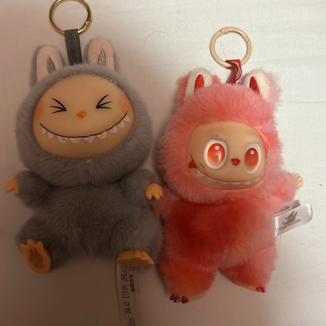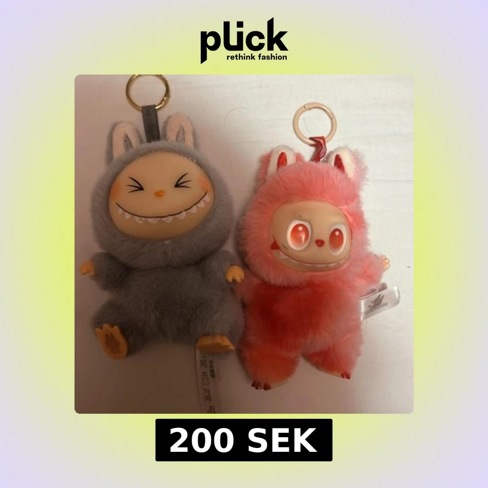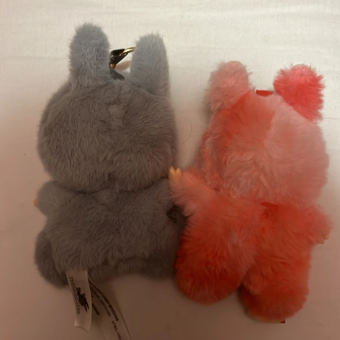 Två små väskor i form av gulliga figurer med stora leenden och kaninöron. En är grå och den andra rosa, båda med mjuk päls och plastansikte. Perfekta att hänga på väskan eller använda som plånbok för småsaker. Nyckelring upptill för enkel fastsättning. Väldigt kända, köpta i Cypern. 200 per nalle, pris kan diskuteras