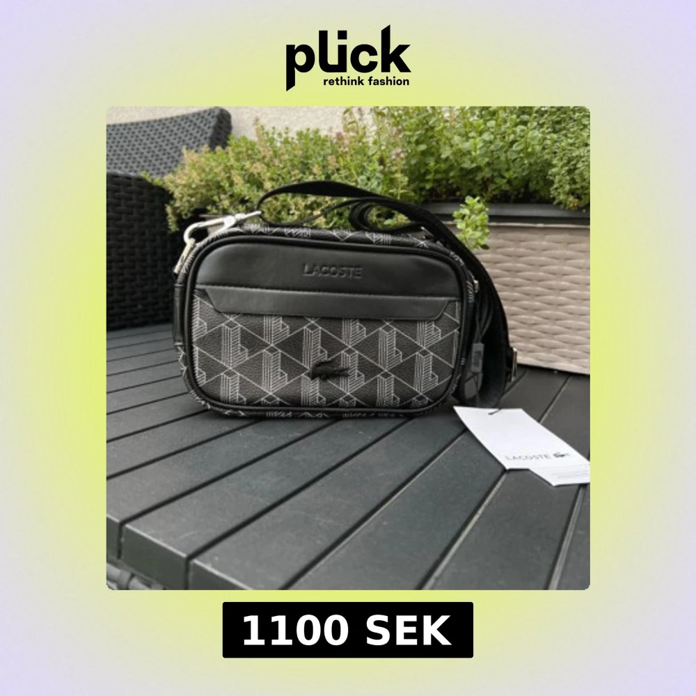 Snygg svart axelväska från Lacoste med geometriskt vitt mönster och präglad logga framtill. Väskan har justerbar axelrem, dragkedja och orange innerfoder. Tillverkad i syntetmaterial med detaljer i skinn-look. Perfekt för att bära det viktigaste med stil.