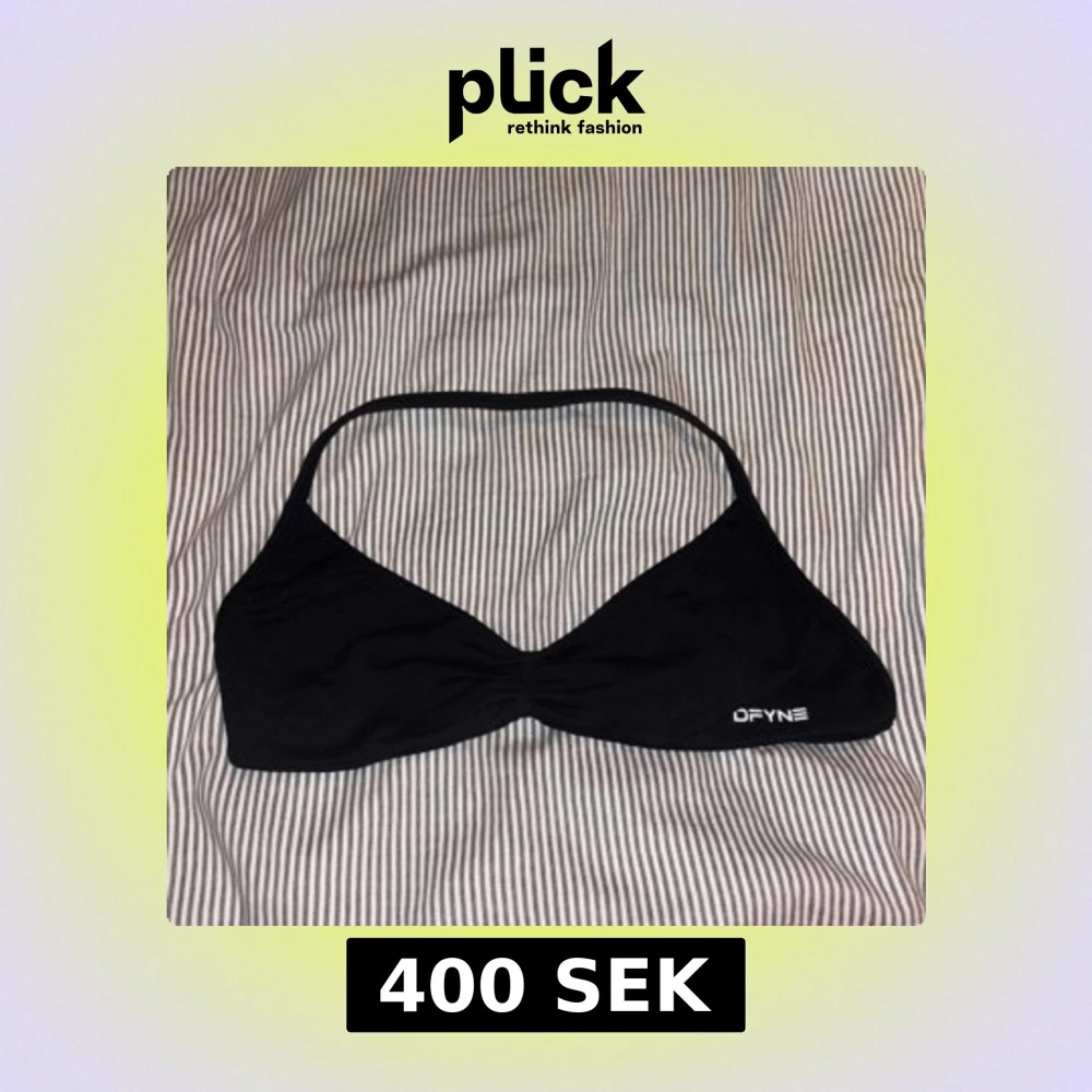 Svart bikiniöverdel från DFYNE med enkel och stilren design. Mjuk och stretchig känsla tack vare materialblandningen av nylon och elastan. Smal halterneck och diskret logga framtill. Snyggt rynkad mitt för extra form. Perfekt för strandhäng och pool. Kommer uten padding.