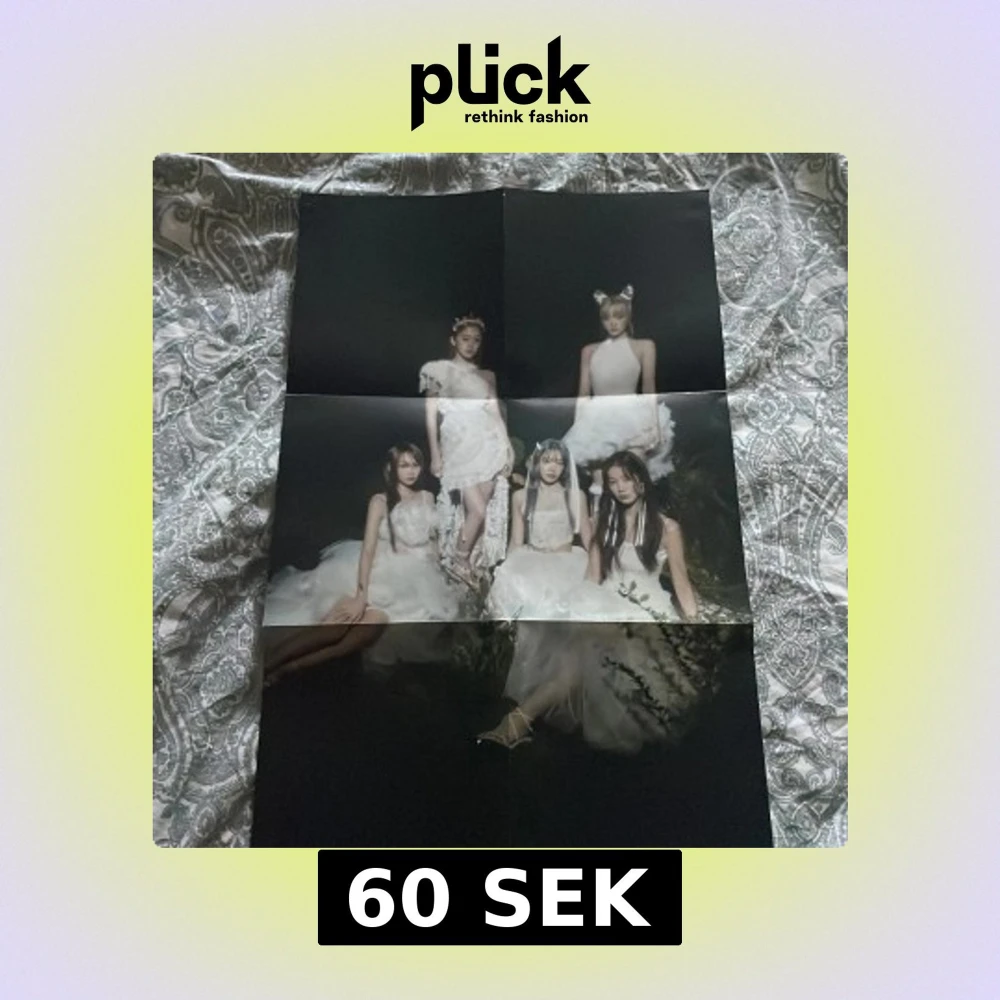 Snygg poster med LE SSERAFIM – perfekt för fans av K-pop! Gruppen poserar i eleganta vita klänningar i en drömlik miljö. Postern har några mindre skador, men motivet är fortfarande superfint🤍 fick den då jag köpte ett annat album men eftersom jag inte lyssnar så mycket på LE SSERAFIM så har jag ingen användning av den<3