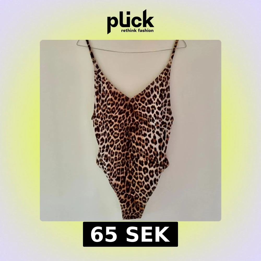Snygg body/baddräkt med leopardmönster och smala axelband. V-ringad framtill, djup i ryggen och högt skuren vid benen för en trendig look.