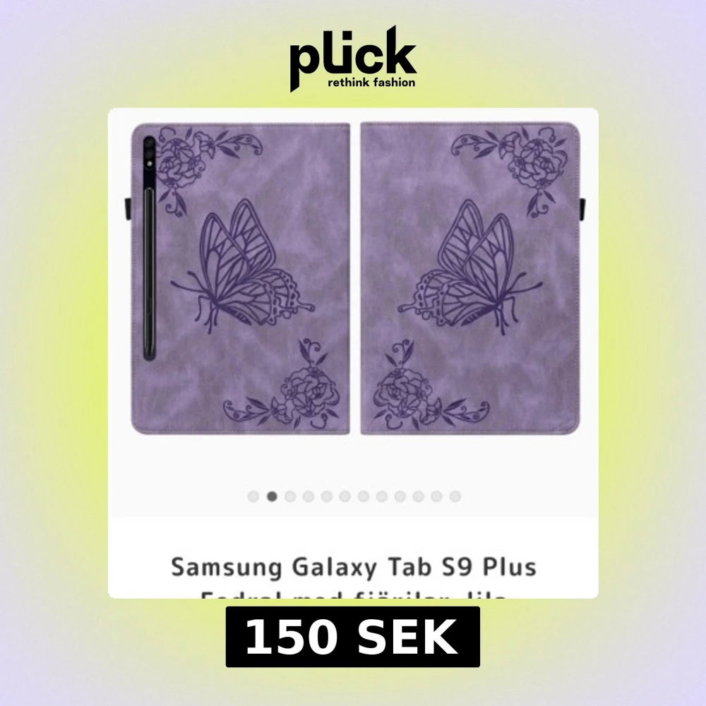Snyggt lila fodral för Samsung Galaxy Tab S9 Plus med ett vackert fjärilsmönster. Fodralet har en praktisk hållare för pennan och kan ställas upp för enkel visning. Perfekt för att skydda din surfplatta med stil.
