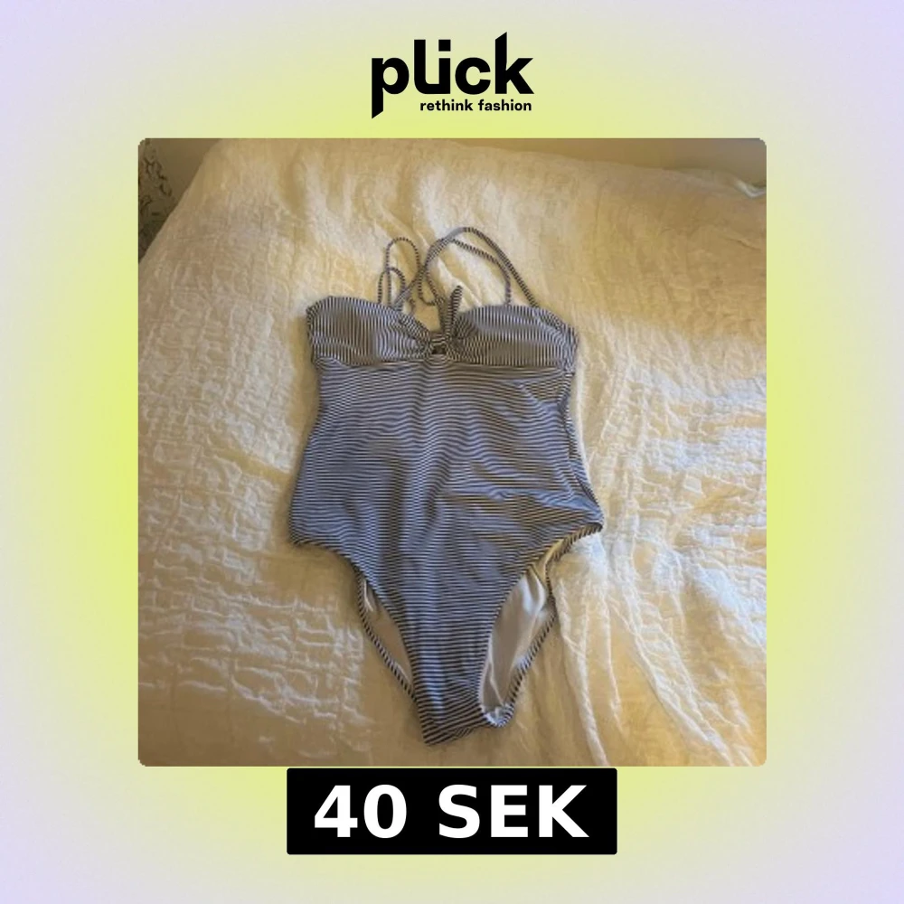 Snygg baddräkt med smala axelband och klassiskt randigt mönster i vitt och mörkblått. Kuporna är lätt vadderade och modellen har en feminin, något hög benskärning. Perfekt för strandhäng eller poolparty i sommar!