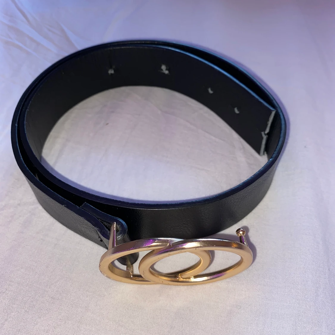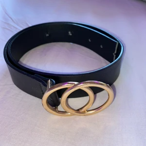 Jag säljer ett svart skärp med ”guldringar” som ”detalj”. Storleken är S. OBS! jag har klippt av det lite på längden för att det skulle passa mig men på mig passar det perfekt nu! Min storlek som jag har i skärp är S. Skärpet är i fint skick och använt några gånger. Det kan ha några små märken men inget man tänker på.