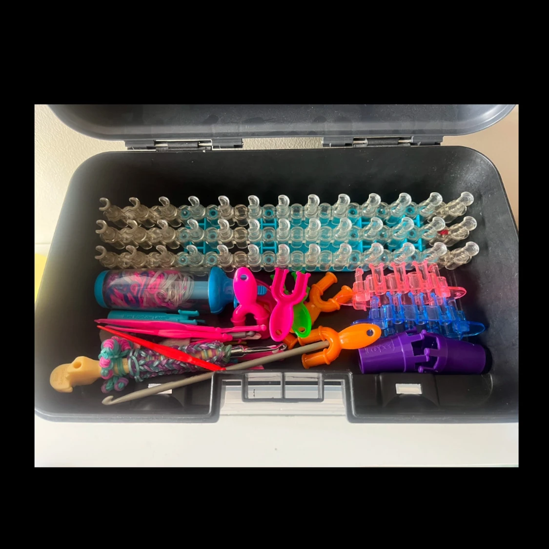 Säljer ett komplett och välorganiserat Loom Bands-set med över 40 färger gummiband, flera vävramar i olika storlekar, många verktyg, Y-formade hållare, massor av S-klämmor, dekorationer och färdiga figurer. Inkluderar även en stor verktygslåda med utdragbara lådor. Allt är i fint skick – perfekt för kreativa projekt och regniga dagar!💙
