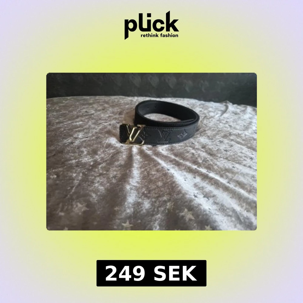 Säljer ett svart Louis Vuitton bälte i skinn med präglade LV-loggor och klassisk guldspänne med LV-emblem. Bältet har en stilren och lyxig design som passar perfekt till jeans eller kostymbyxor. Perfekt accessoar för dig som gillar exklusiva märken.