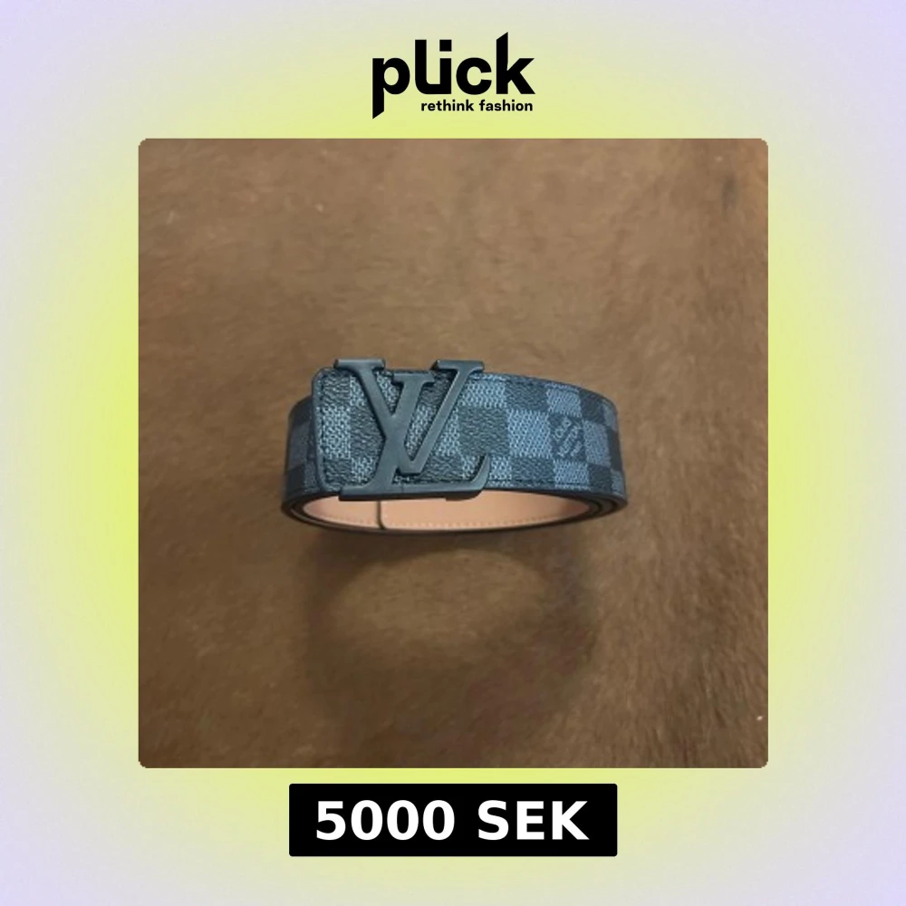 Säljer ett Louis Vuitton bälte i svart och grått med klassiskt rutigt Damier-mönster. Bältet har en stor LV-logga i matt svart metall som spänne och är tillverkat i äkta skinn. Insidan är ljusbeige och har präglad Louis Vuitton-text. Perfekt accessoar för att lyfta din outfit.
