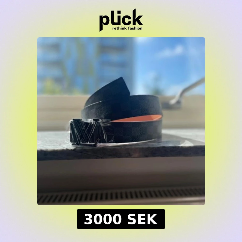 Säljer ett Louis Vuitton bälte i svart skinn med diskret rutigt mönster och ikoniskt LV-spänne i svart metall. Insidan är ljusbrun med präglad logotyp och fina sömmar. Perfekt accessoar för att lyfta din outfit.