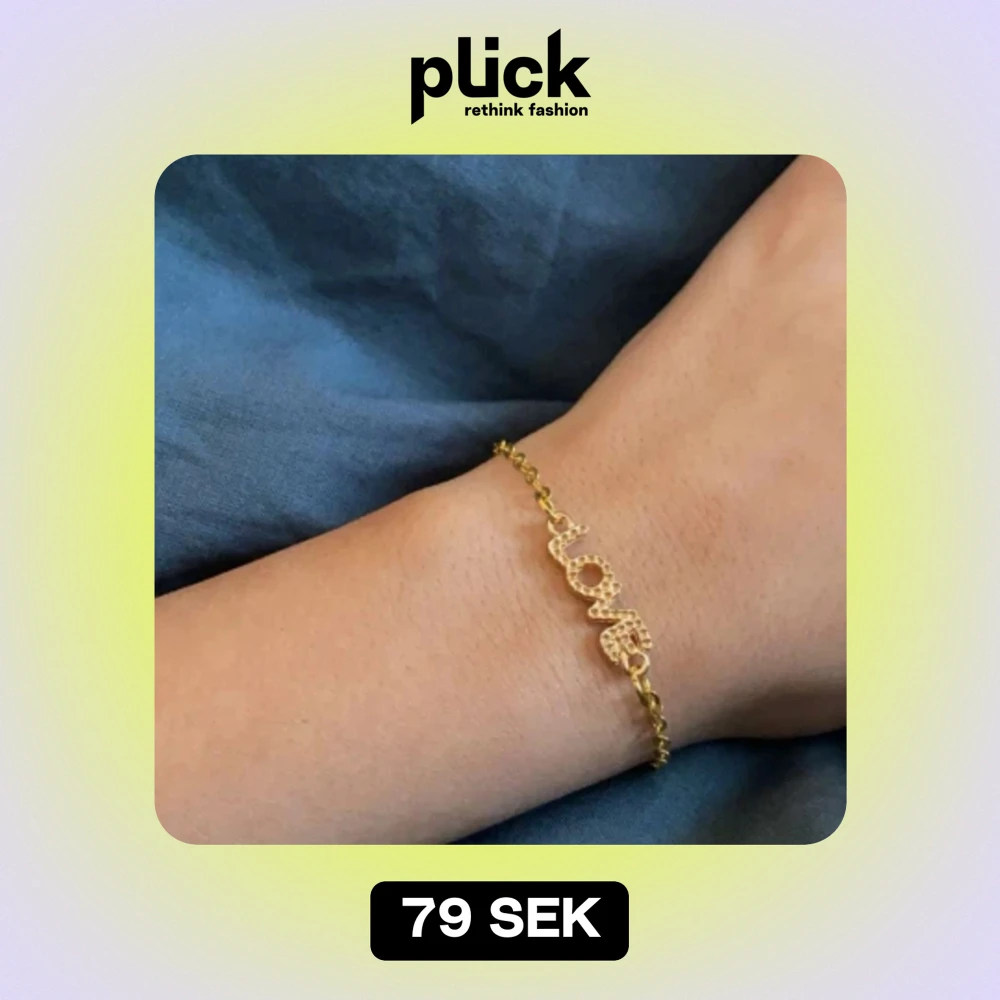 Guldigt Kedjearmband med berlock där det står ”Love” för endast 79kr!🎀💕