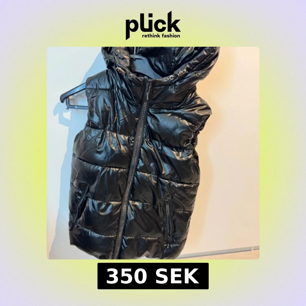 Snygg svart glansig dunväst med dragkedja framtill. Perfekt för att hålla värmen med stil. Västen har en hög krage och är quiltad för extra komfort. Ett måste för garderoben!