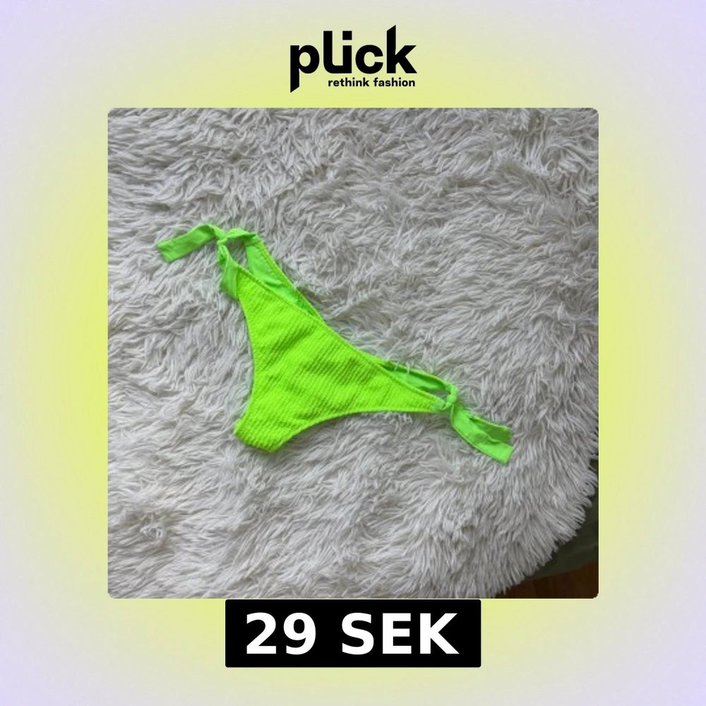 Säljer en snygg neongrön bikiniunderdel från Calzedonia i storlek M. Underdelen har ribbad struktur och knyt i sidorna för en justerbar passform. Perfekt för dig som vill sticka ut på stranden i sommar!