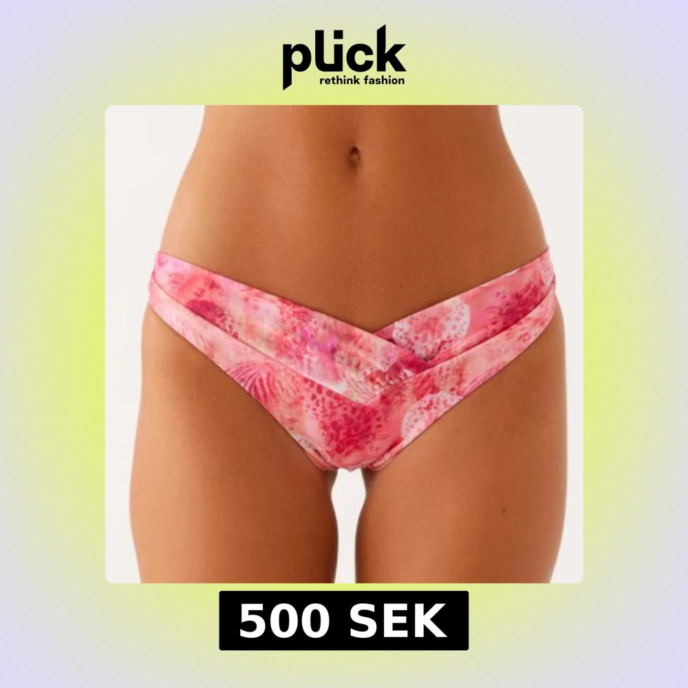 Snygg bikini från Peppermayo i rosa och ljusrosa toner med abstrakt mönster. Bandeau-topp med twist framtill och matchande bikinitrosa med omlott-detalj i midjan. Perfekt för stranden eller poolen!