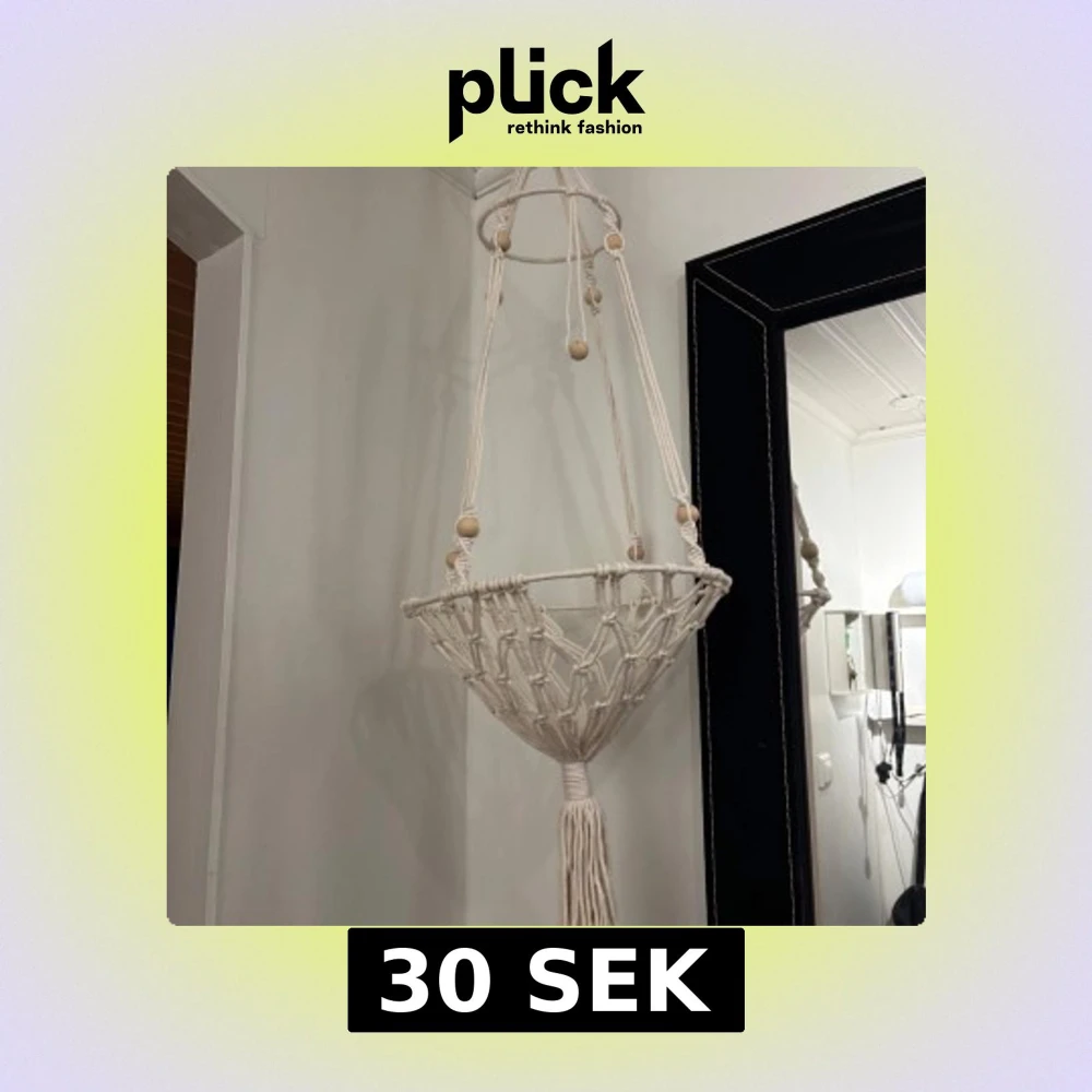 Makramé-ampel som passar perfekt för katten eller växter. Funkar också som förvaring.