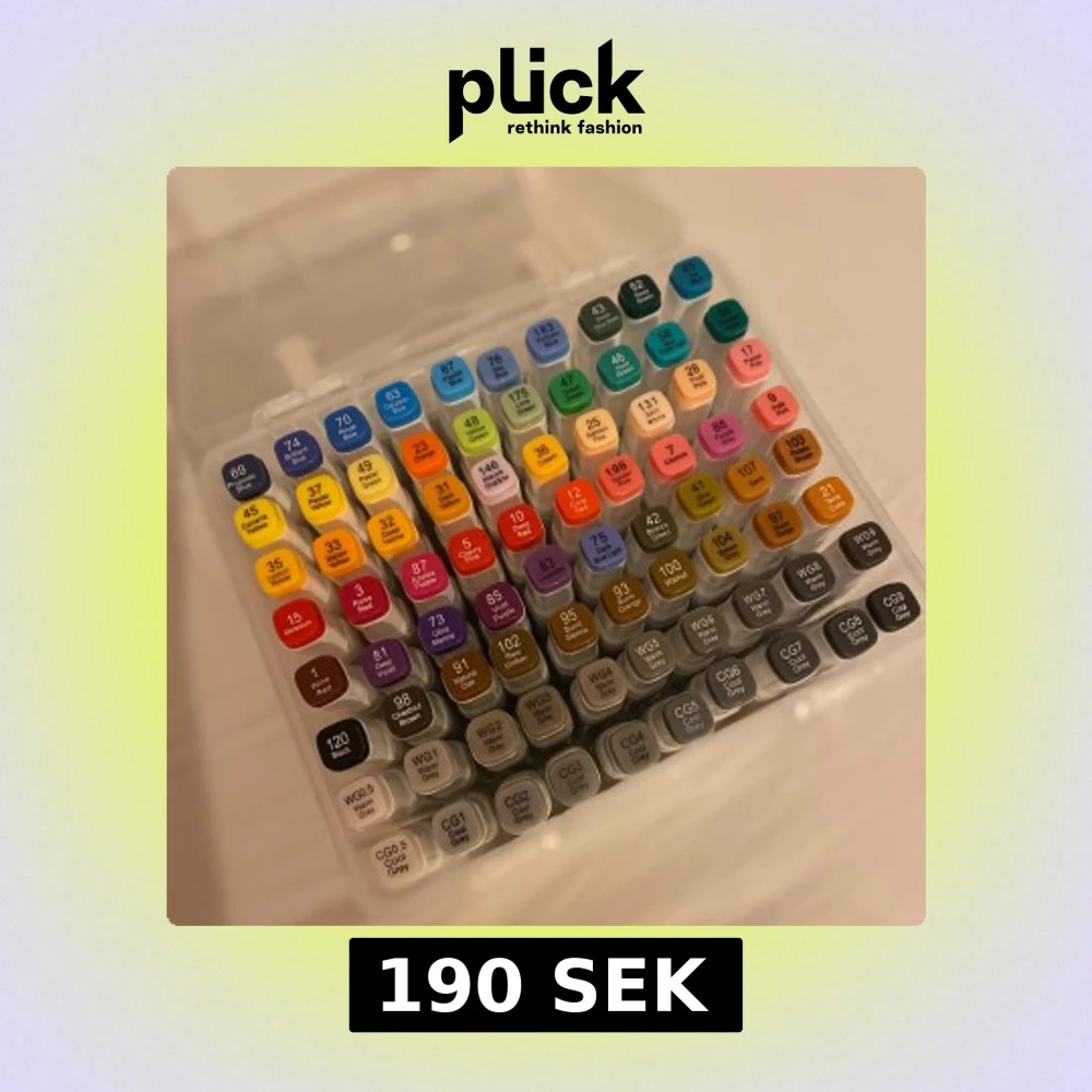Alla pennor är oanvända därför jag råkade beställa två exemplar. Färgstarkt set med 80 dubbla spetsmarkörer från Jolly Craft Studio. Perfekt för teckning, design och hobby. Markörerna har bred färgpalett och levereras i praktisk förvaringslåda. Original pris: 300:-
