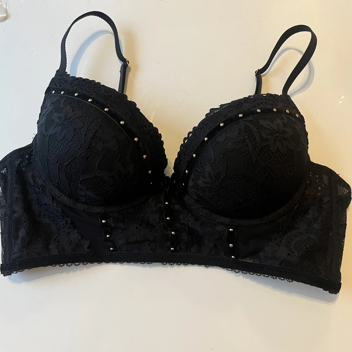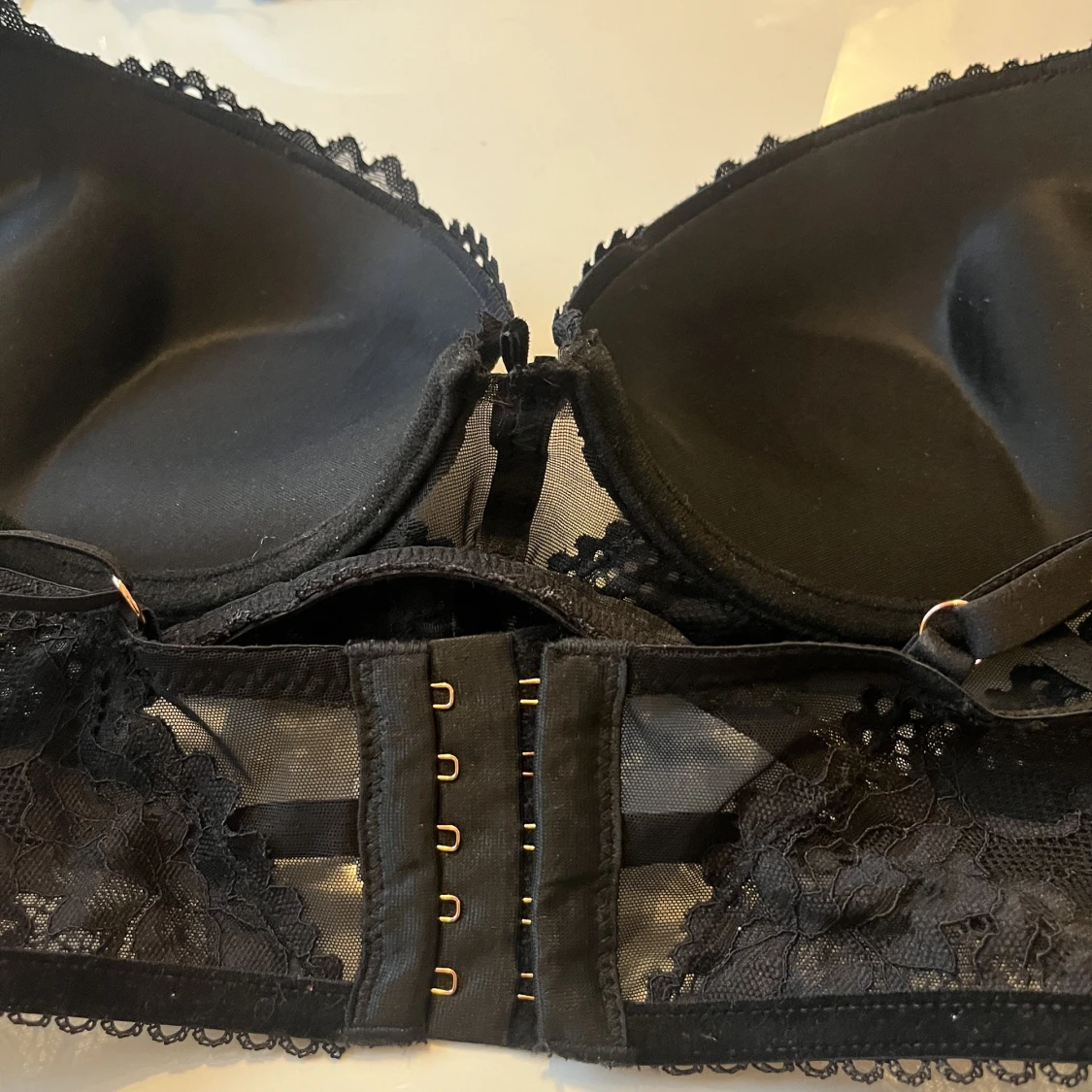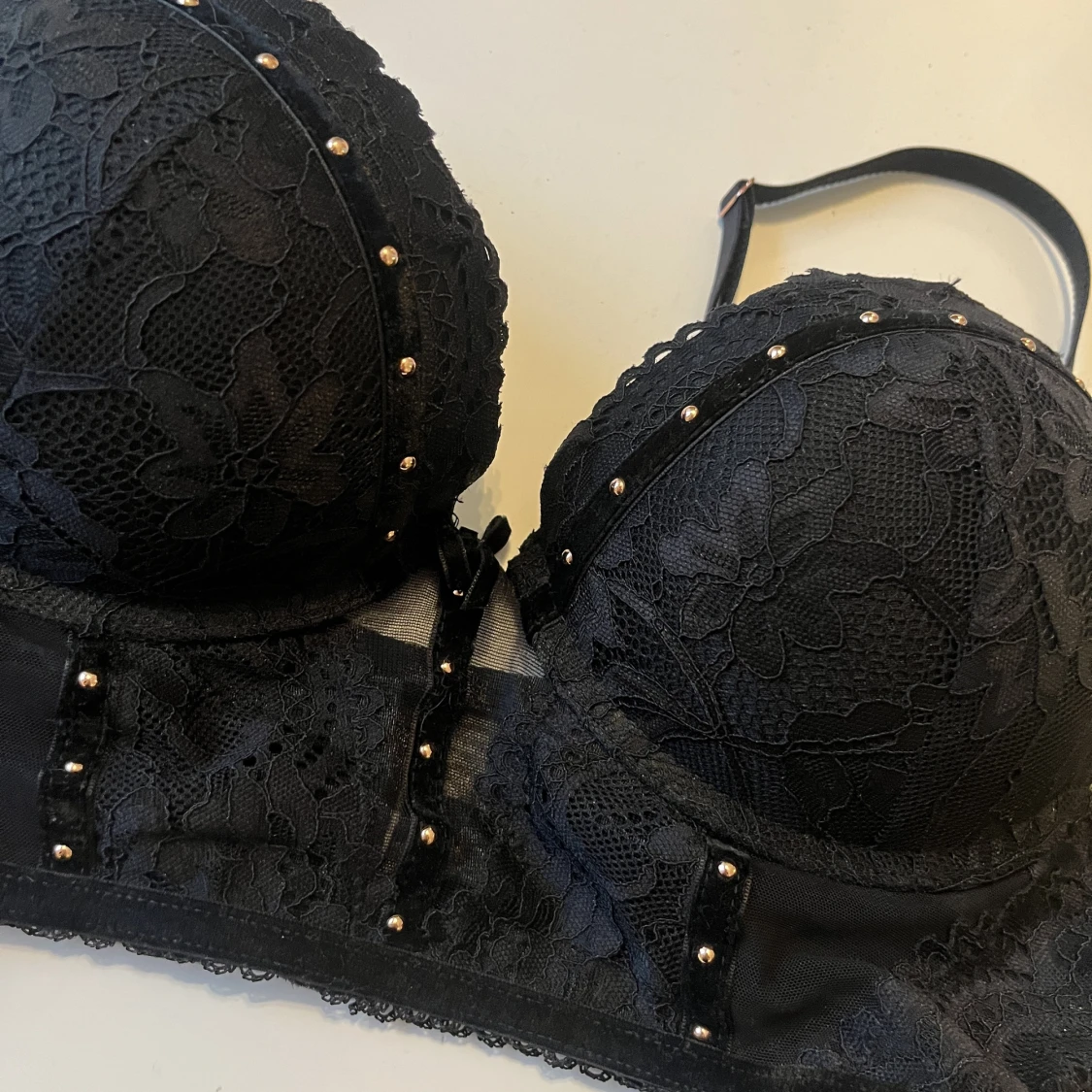 Omärkt märke och ingen storlek. Fick nyss hem härifrån på Plick men dessvärre chansade jag hej vilt och uppskattar den till en 70/75C då den var lite för tajt men bra kupa för min del 😭 Säljer för det pris jag gav totalt ❤️ kan även säljas utanför 🌟