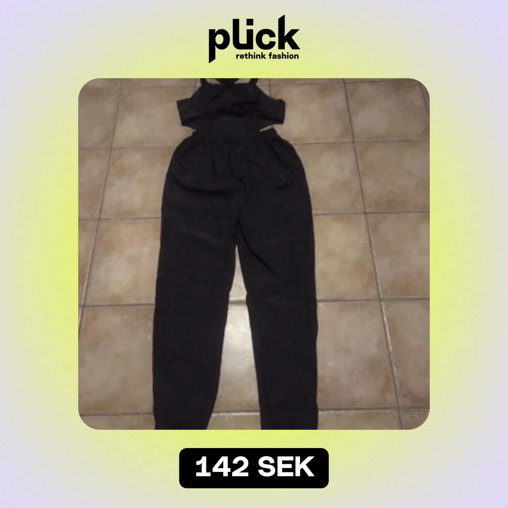 Nyinköpt samt oanvänd jumpsuit. Rygglös med korsande band på ryggen. Resår vid midjan ovanför rumpan.Den är något för lång för mig,är 158cm,så runt 160-170, antar jag att den sitter bra. Själv väger jag ca 62 kg.