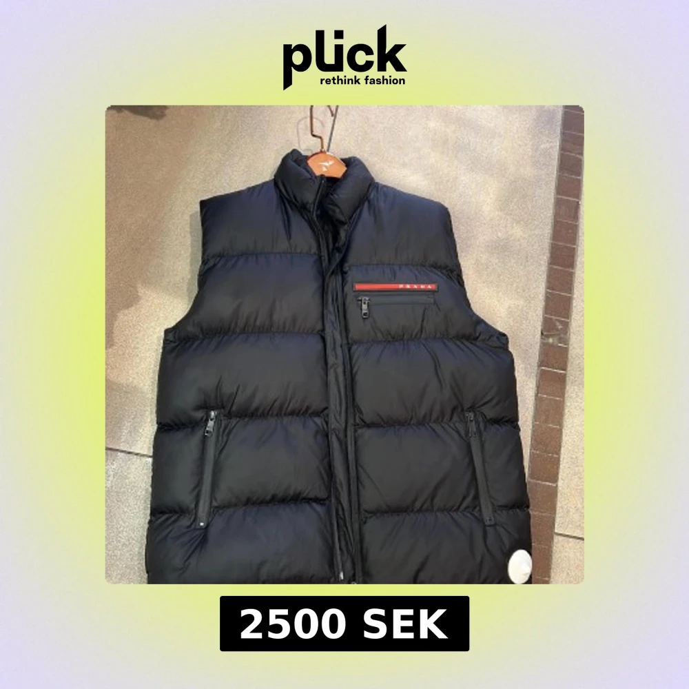 Svart dunväst från Moncler - Säljer en svart dunväst från Moncler med glansig finish och hög krage. Västen har två fickor med dragkedja och klassisk Moncler-logga på bröstet. Insidan har en unik serietidningsetikett. Perfekt för dig som vill ha en stilren och varm väst.