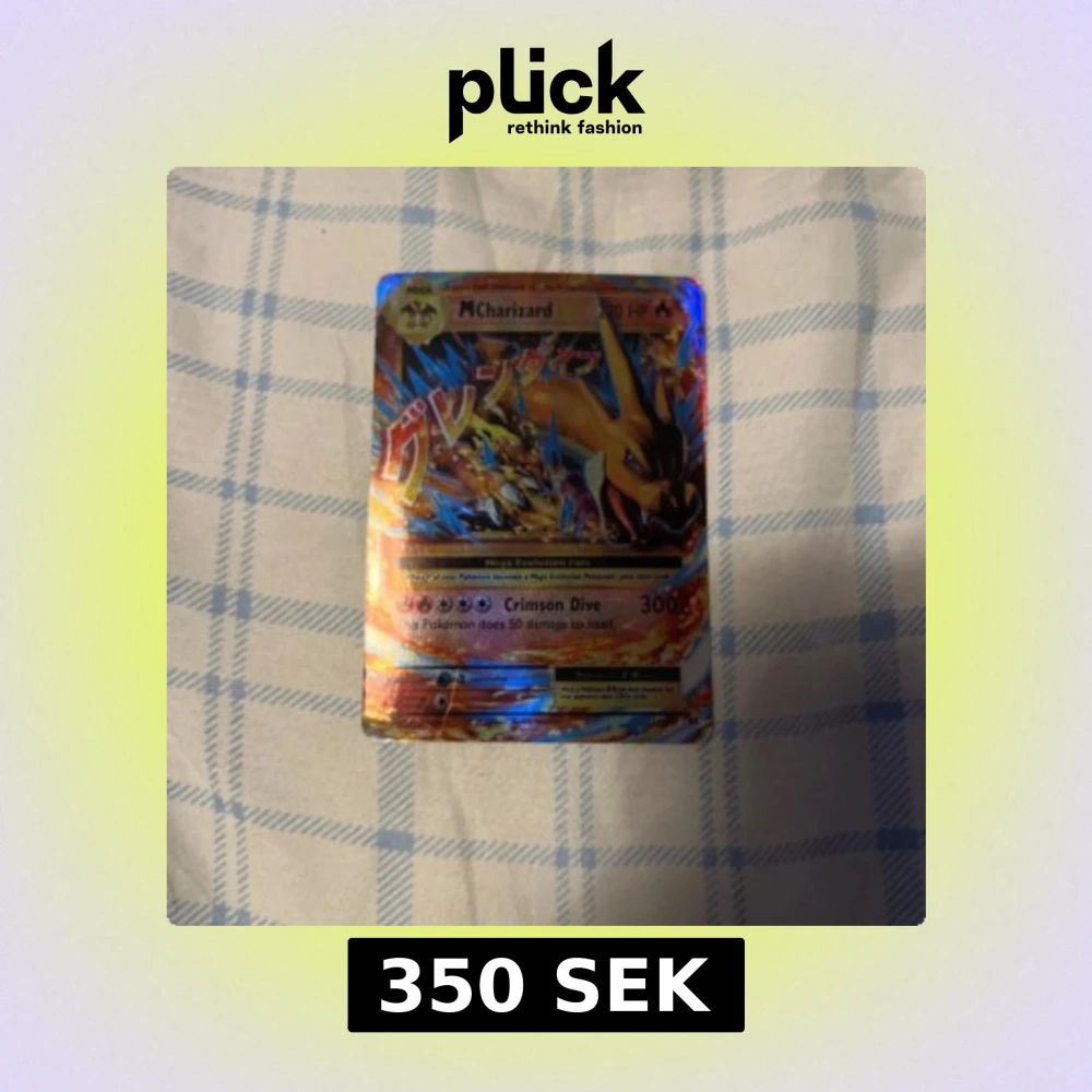 Säljer ett Mega Charizard Pokémonkort med en imponerande design och starka färger. Kortet har en holografisk yta som ger det en extra glans. Perfekt för samlare eller Pokémon-fans som vill utöka sin kortsamling.