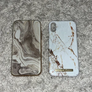 Mobilskal i marmor för iPhone xr, högra från ideal of sweden och vänstra från shein. Andra sidan ser man en liten spricka i det vita skalet