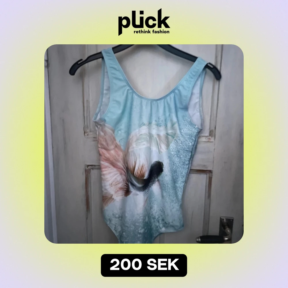 Superfin baddräkt från Molo med ett vackert fiskmotiv i mjuka pastellfärger. Den har en öppen rygg. Materialet är av hög kvalitet och erbjuder UV-skydd på 40+. Helt ny med taggar kvar! Butiksägaren har klippt svarta lappen i två bitar.