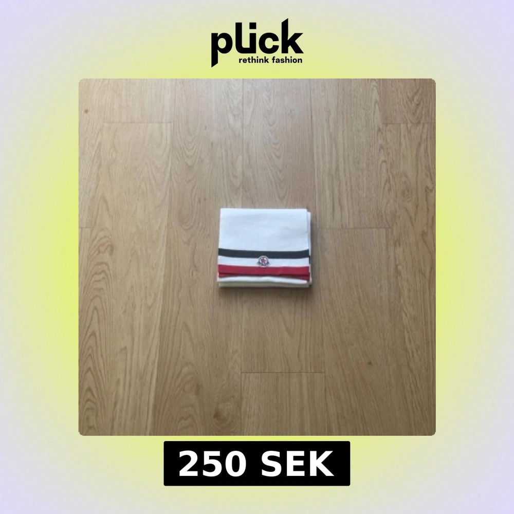 Vit halsduk från Moncler med klassiska svarta och röda ränder samt broderad logotyp framtill. Halsduken är stickad och har en clean, stilren look som passar perfekt till vinterjackan.