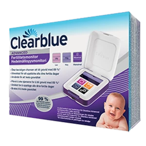 Clearblue ferilites monitor ligger oöppnad i original kartongen. Frakten ingår i priset.