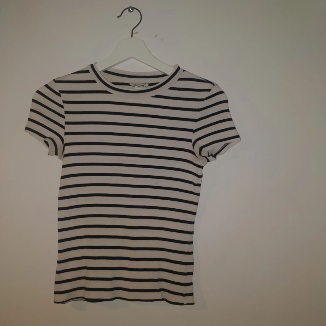 Ribbad svart-och vitrandig topp från Monki i helt ok skick, köparen står för frakt✌️✌️