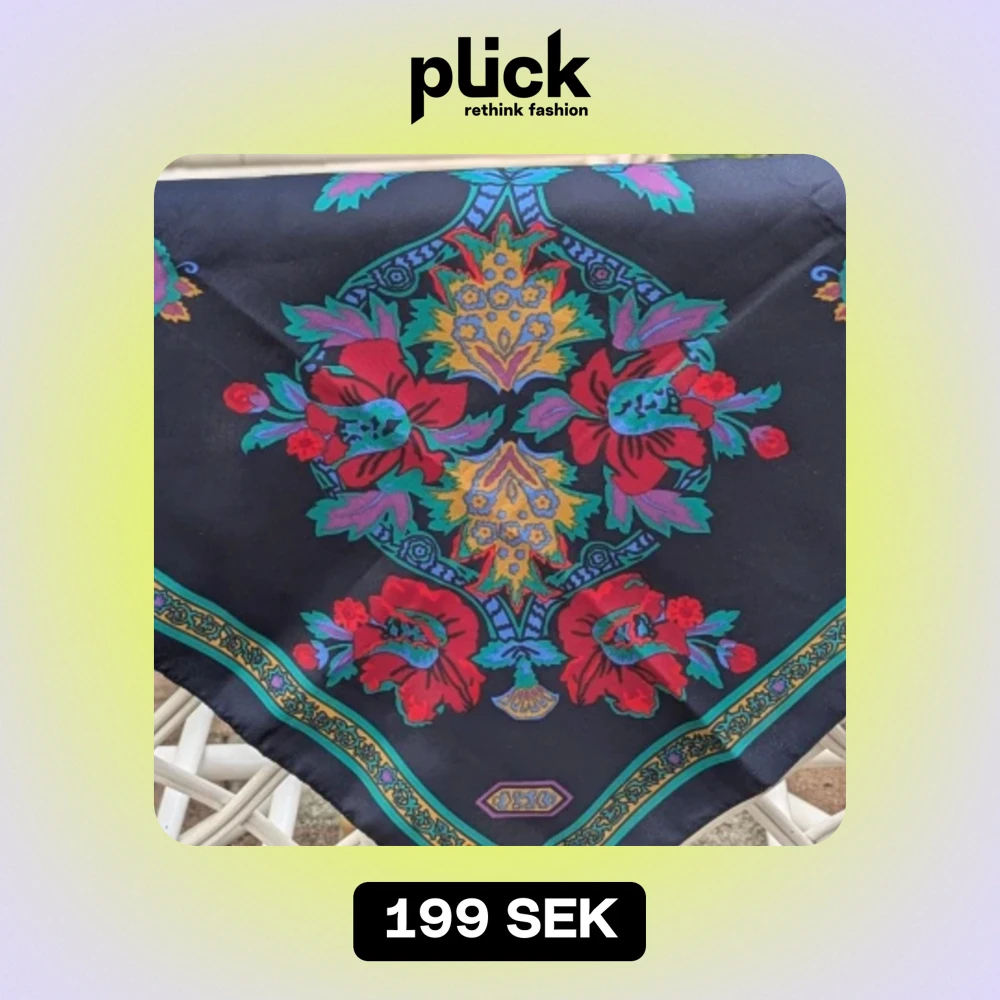 Säljer en snygg och färgglad sjal från Totes. Den är tillverkad i Italien och gjord av 100% polyester. Sjalen har ett vackert blommigt mönster i rött, grönt och gult mot en mörkblå bakgrund. Perfekt för att liva upp vilken outfit som helst!